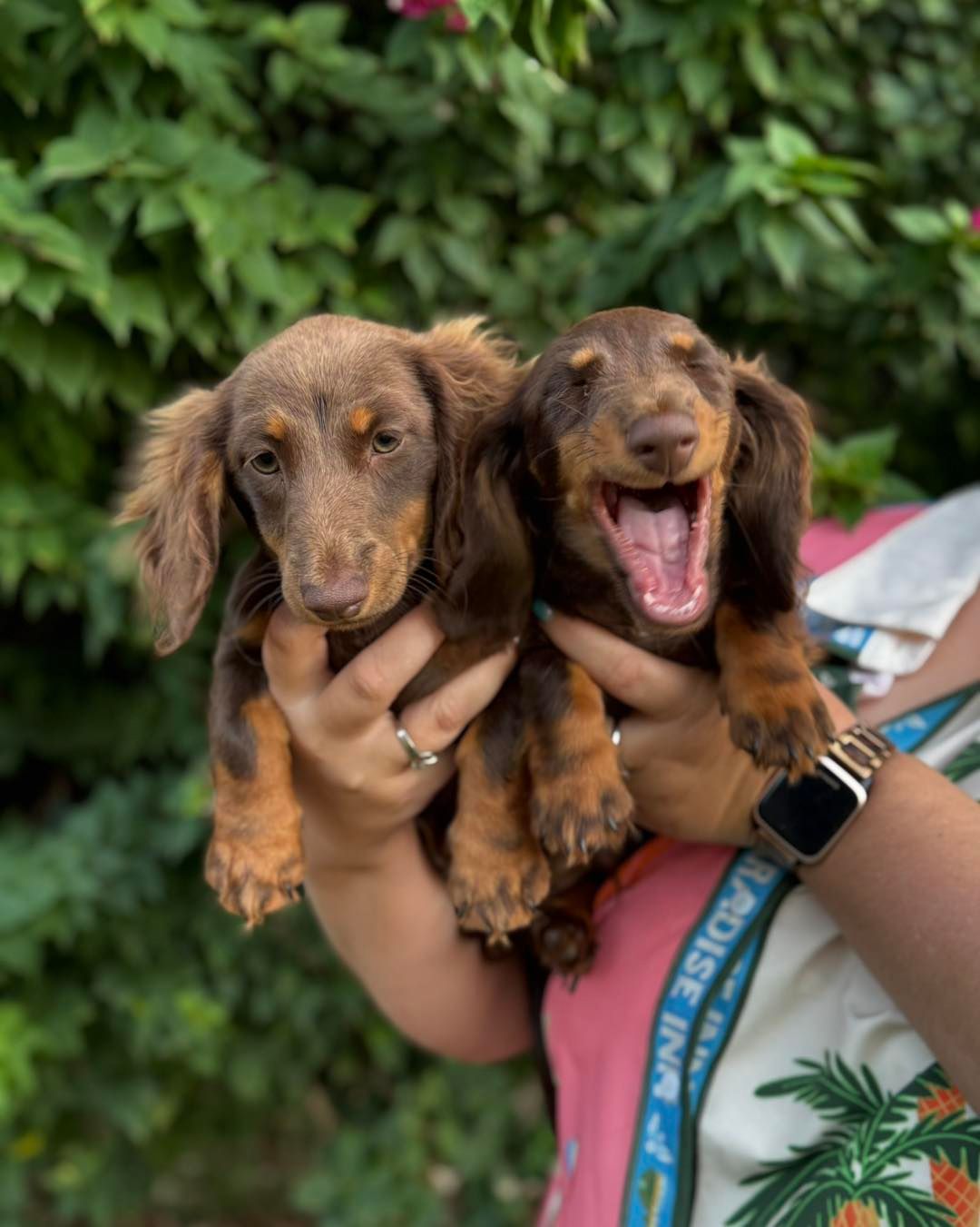 Our long-haired dachshunds have beautiful, silky coats that are surprisingly easy to care for. With just a gentle brush a few times a week, their coat stays healthy and tangle-free.